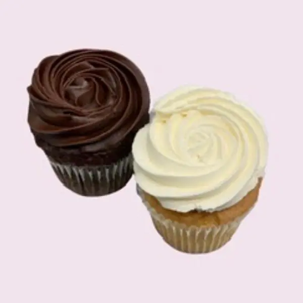 Chocolate vegan icing on a chocolate vegan cupcake OR Vanilla vegan icing on a vanilla vegan cupcake